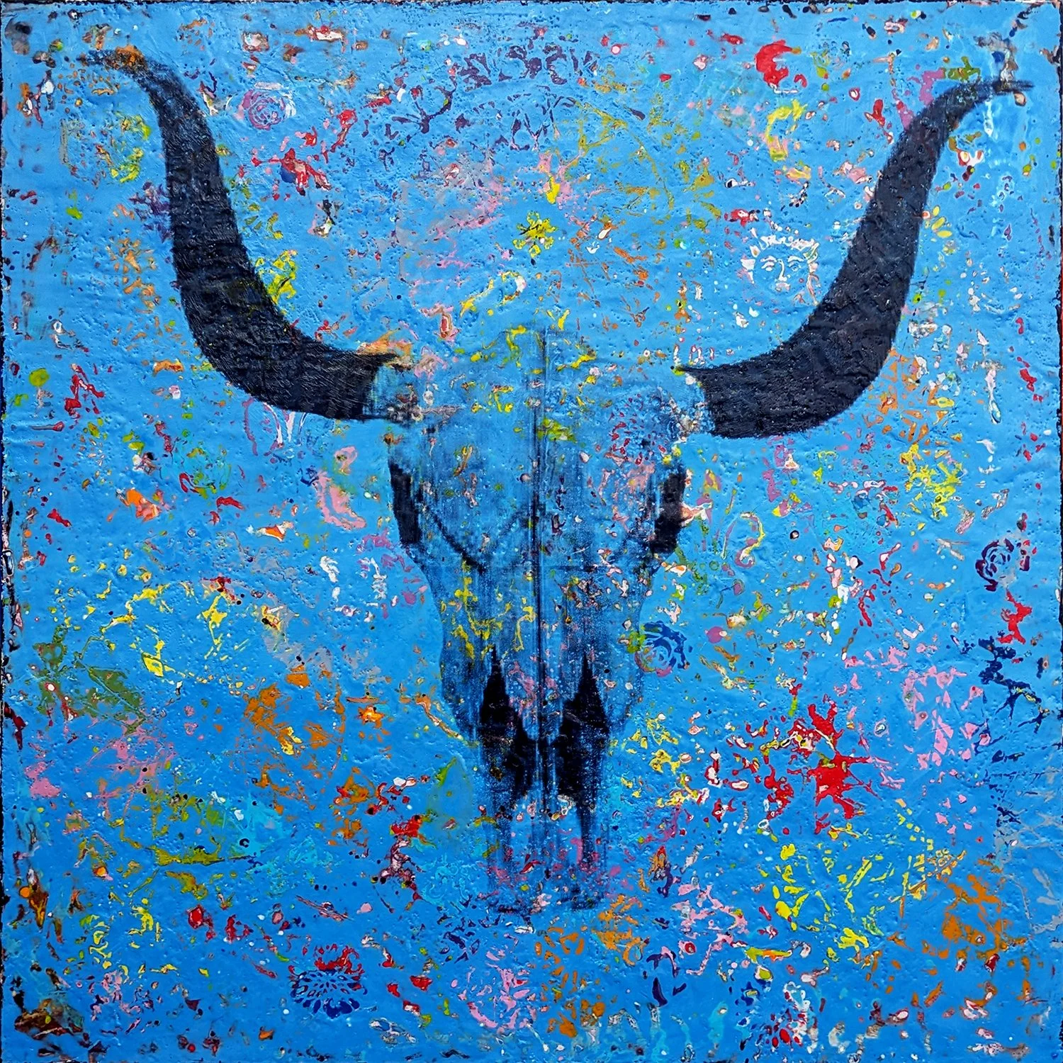 The B1rds series celebrates the ubiquitous grackles of Austin. Using colorful layered encaustic wax and photo transfers, I capture their playful presence against colorful skies. These lively birds reflect the vibrant, noisy life of the city, inviting viewers to appreciate the everyday beauty in urban nature.